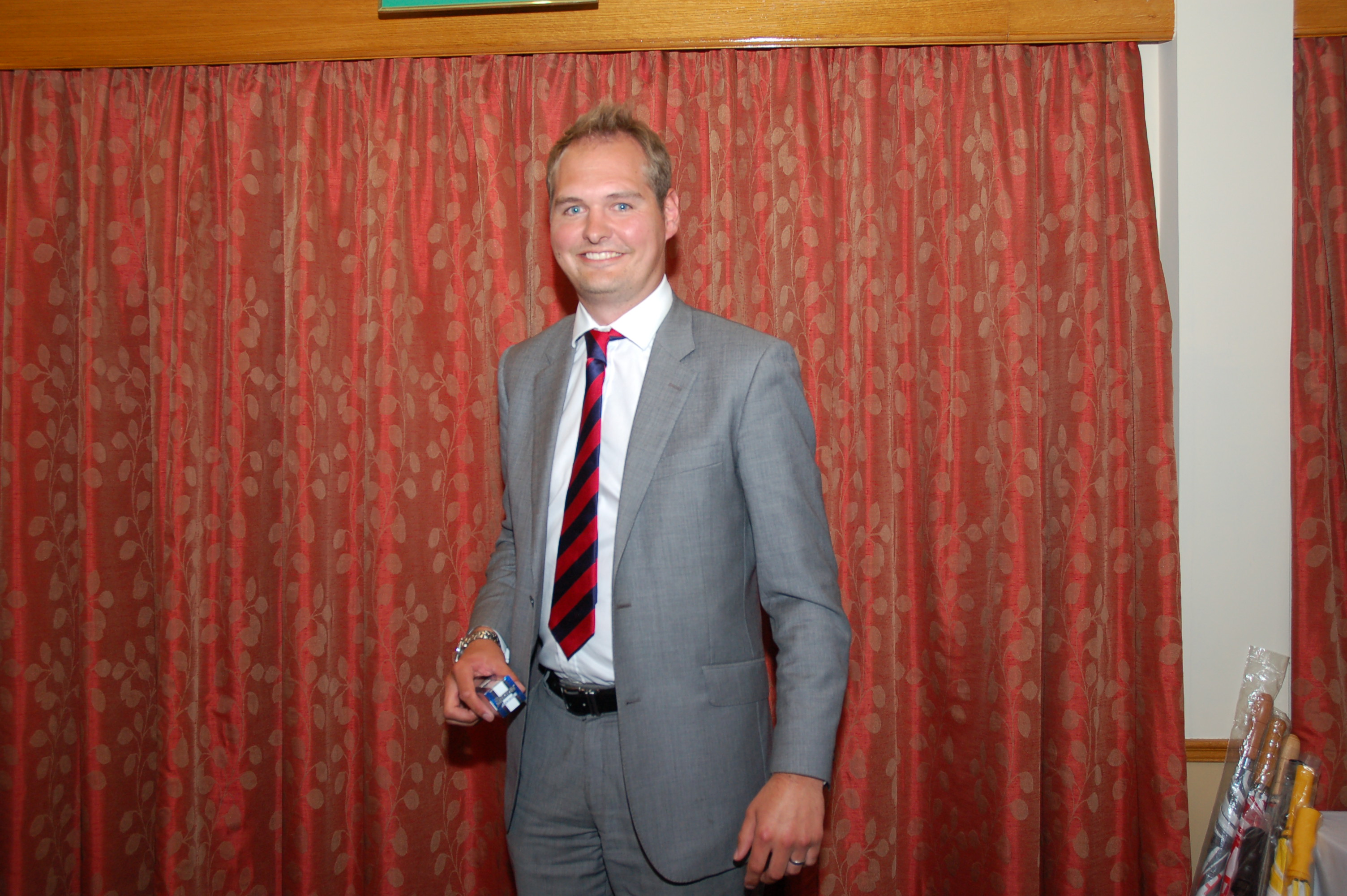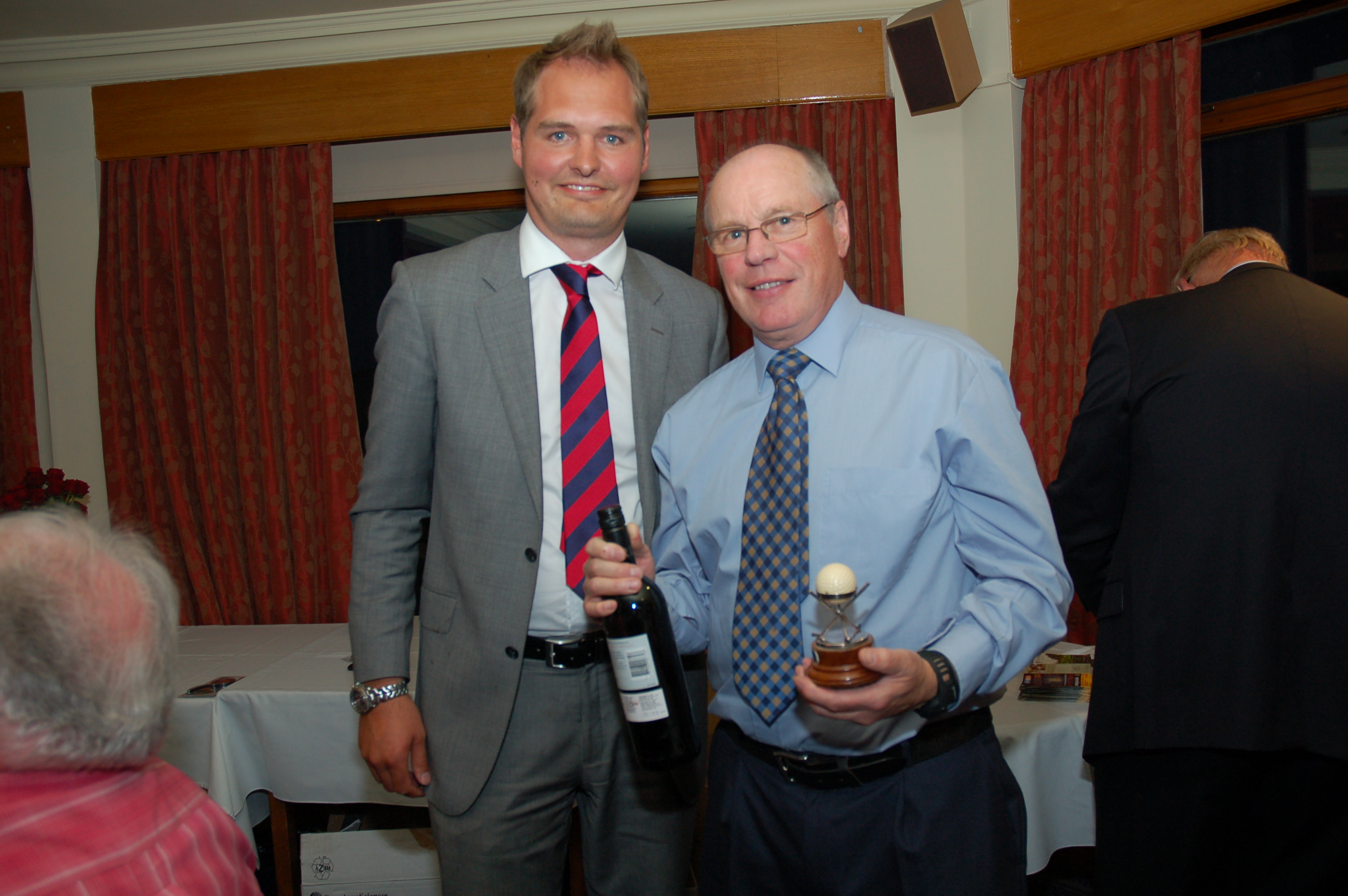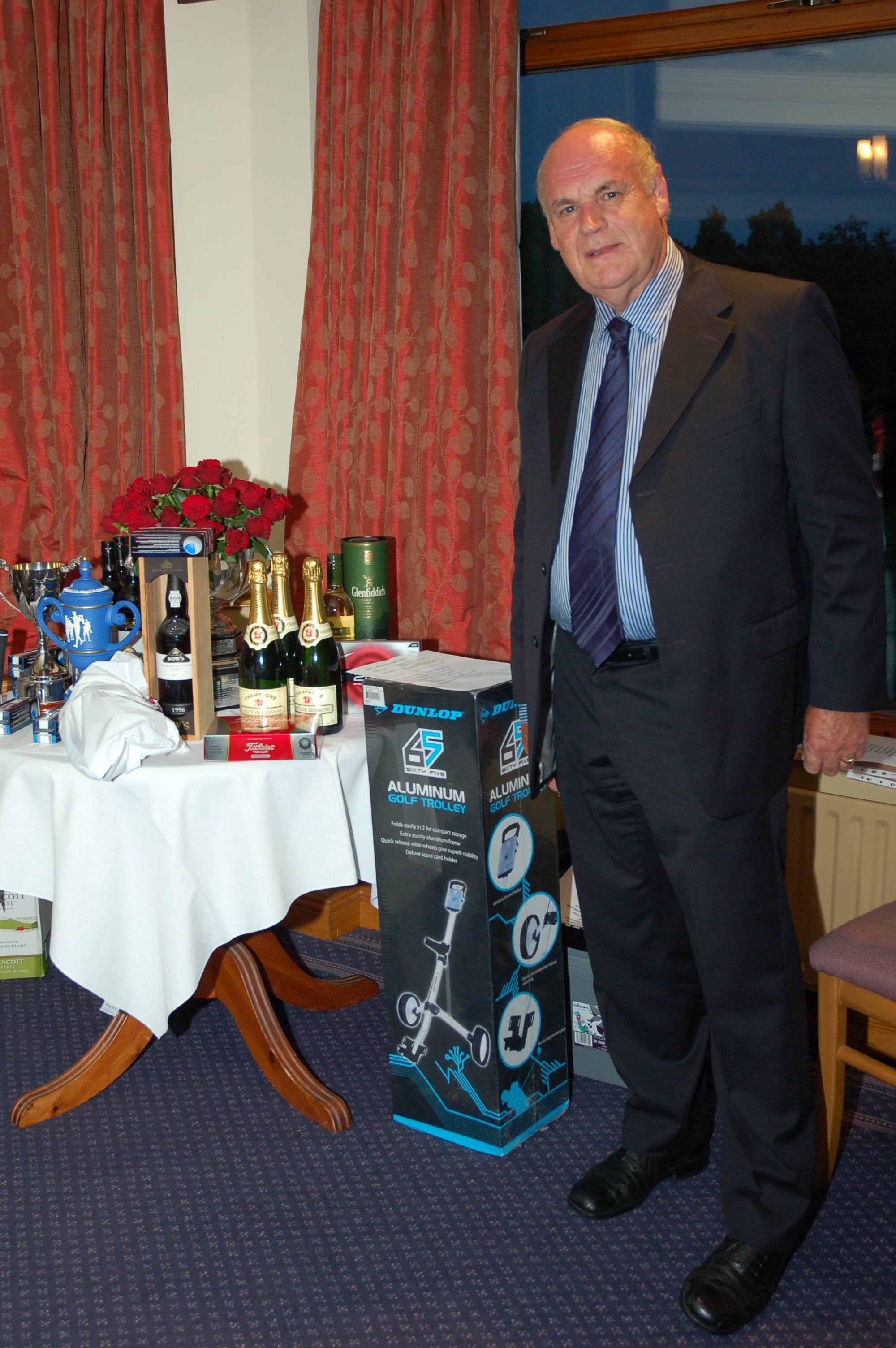 In third place for the Braime Trophy was Steve Stacey. Runner up in second place was Richard Langley-Webb. The biggest cheer of the evening came as Steve Stacey announced that Kevin Hegarty had won the Braime Trophy. Kevin spoke of his pleasure in winning the trophy and said how much he had enjoyed organising the golf for so many years. He thanked Steve Stacey for organising this year’s event so well and said he wondered how Steve had even managed to arrange such good weather !