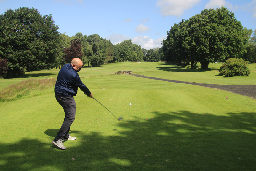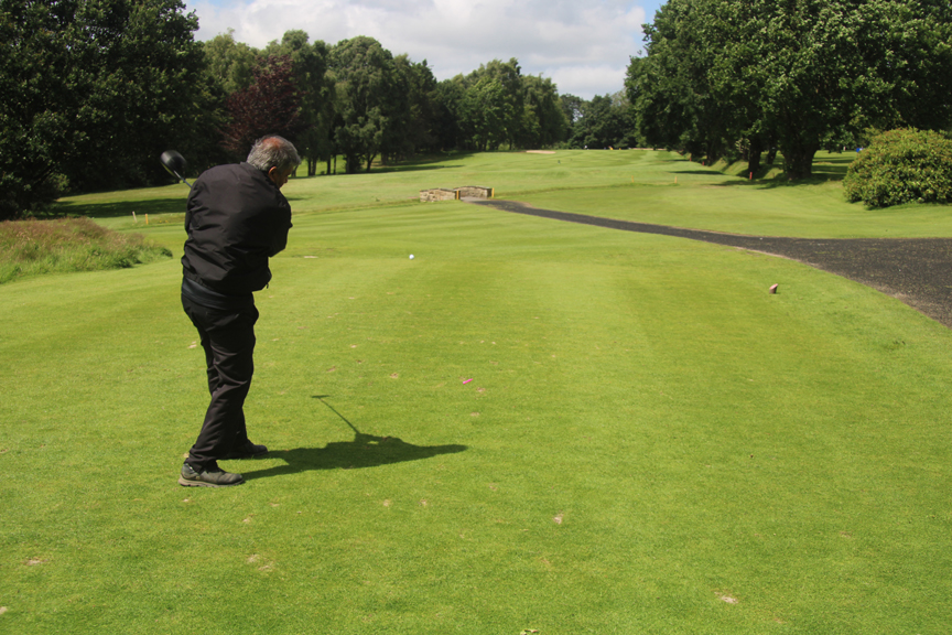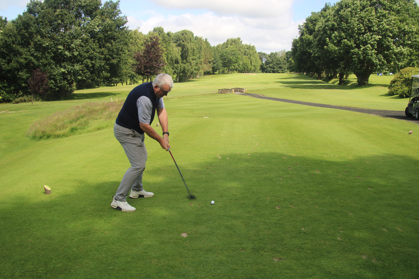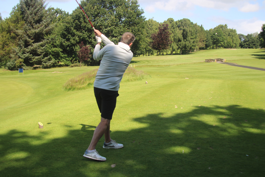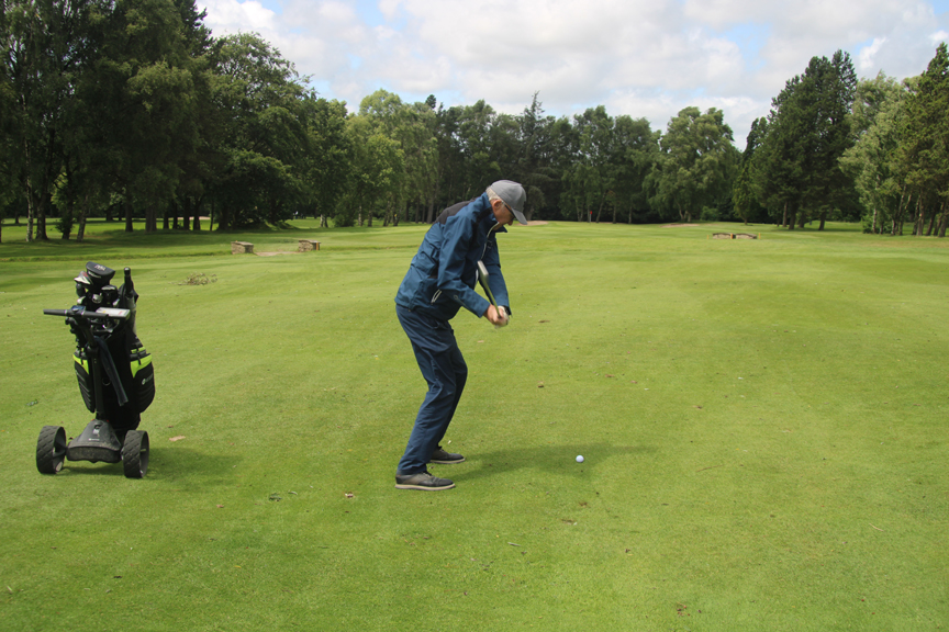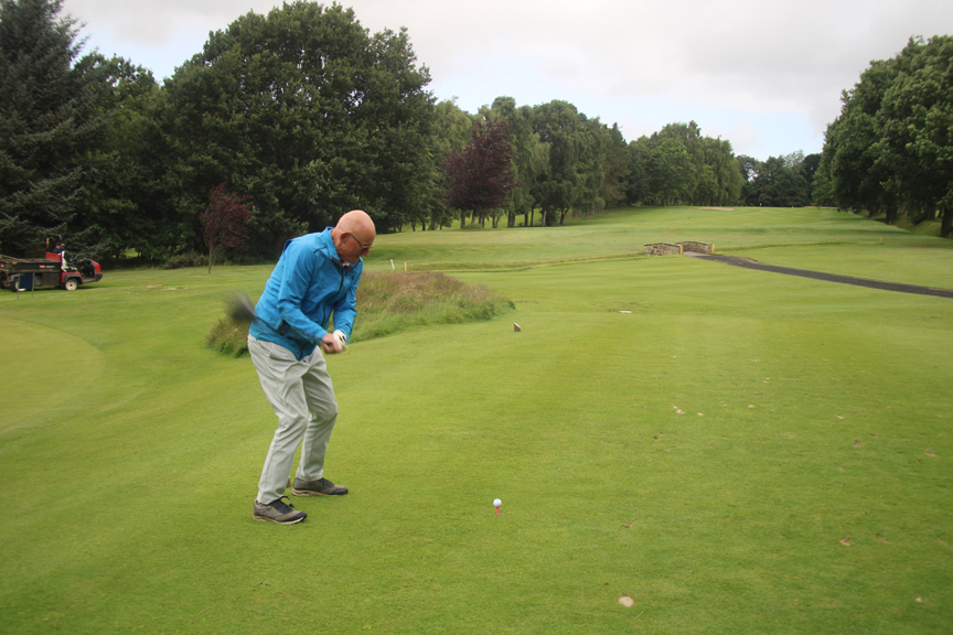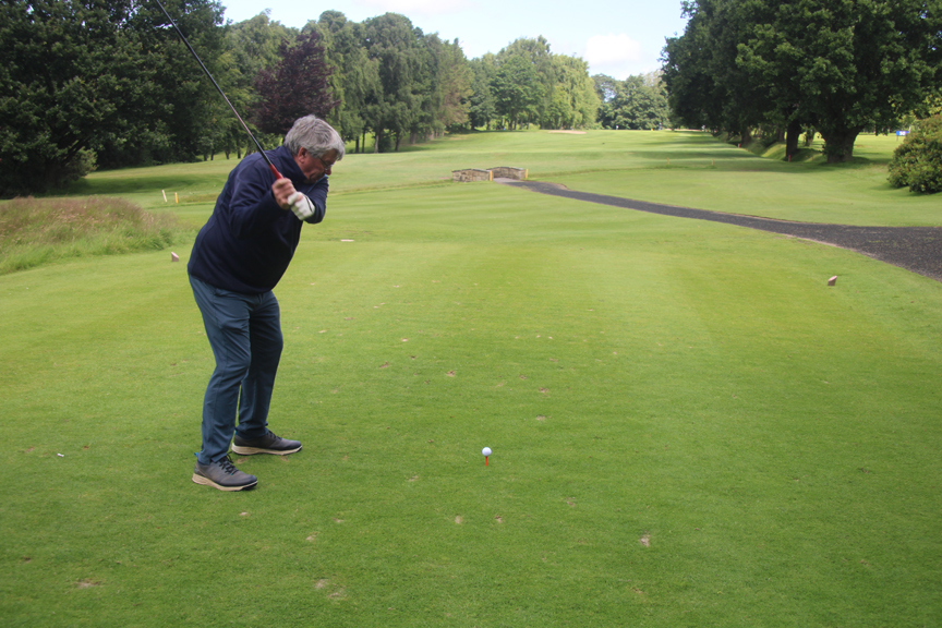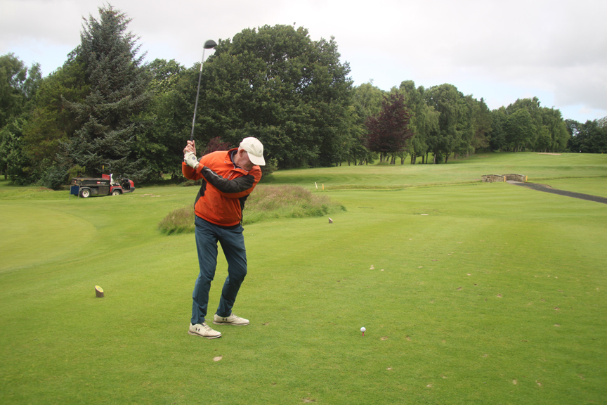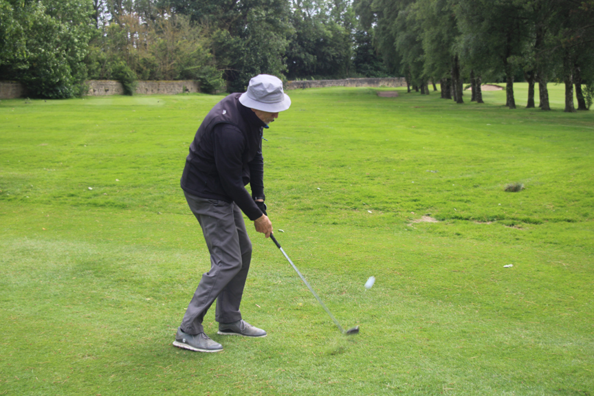 “As I couldn’t play on the golf day, I took a lot of photos, including players teeing off at the 1st. I used a high-speed sports setting on the camera, which picked up 3 or 4 pictures of everybody’s swing so have selected one for each person, except for the 3-handicap golfer, which shows a perfect swing, so included 3. In many cases you can see the ball in flight.”