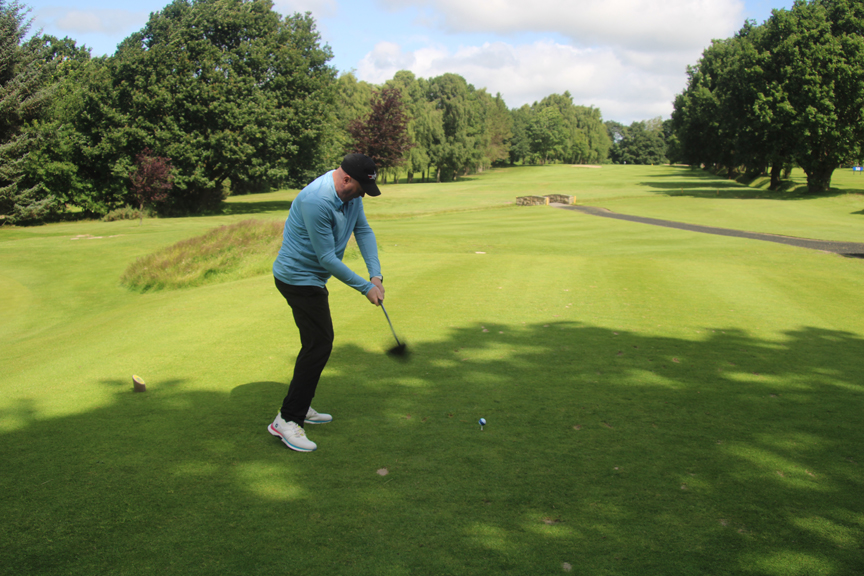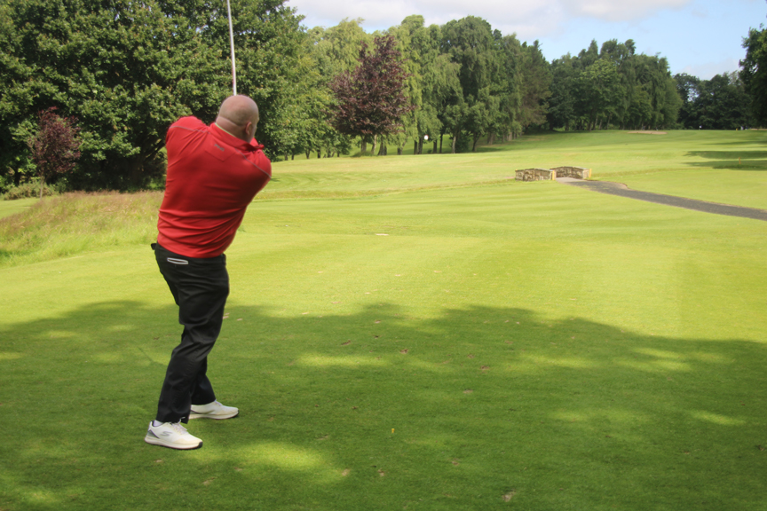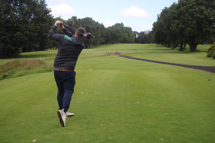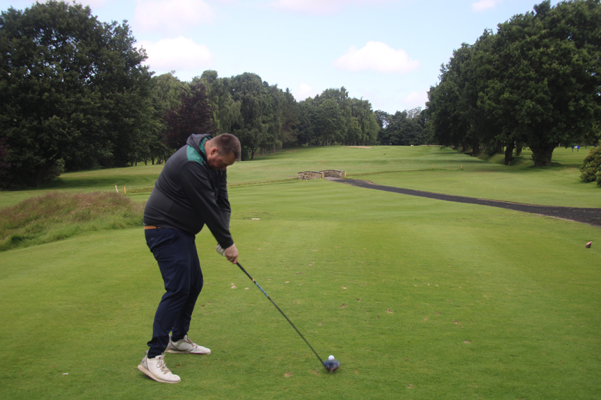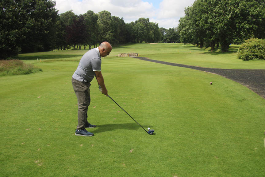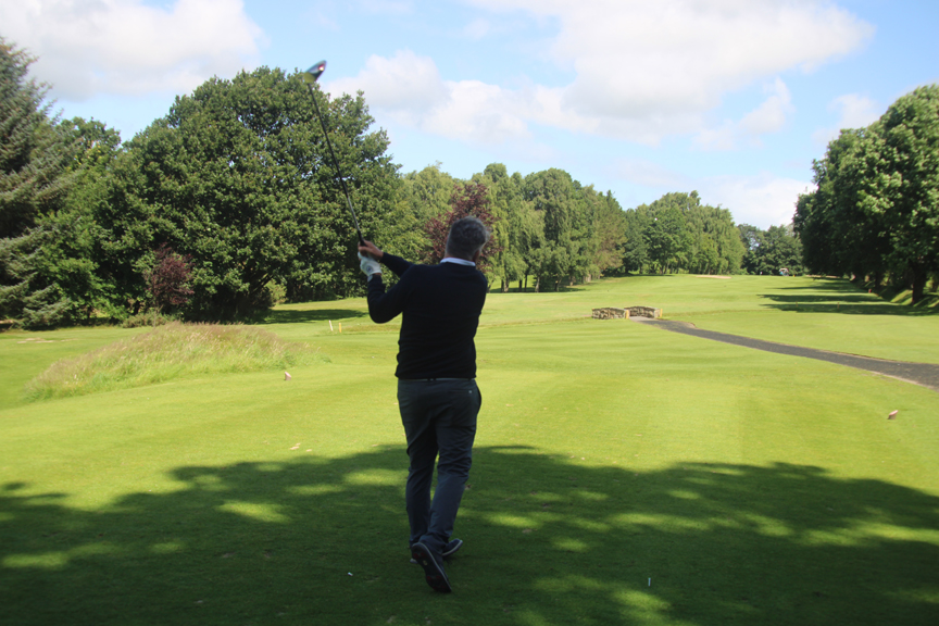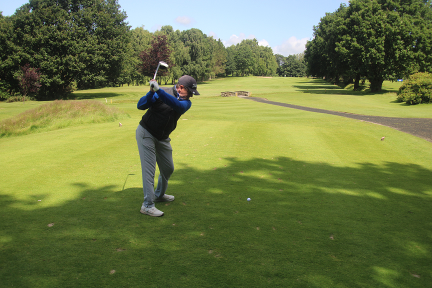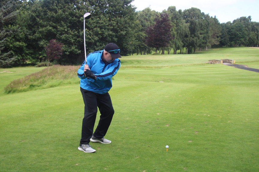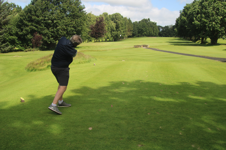 “As I couldn’t play on the golf day, I took a lot of photos, including players teeing off at the 1st. I used a high-speed sports setting on the camera, which picked up 3 or 4 pictures of everybody’s swing so have selected one for each person, except for the 3-handicap golfer, which shows a perfect swing, so included 3. In many cases you can see the ball in flight.”