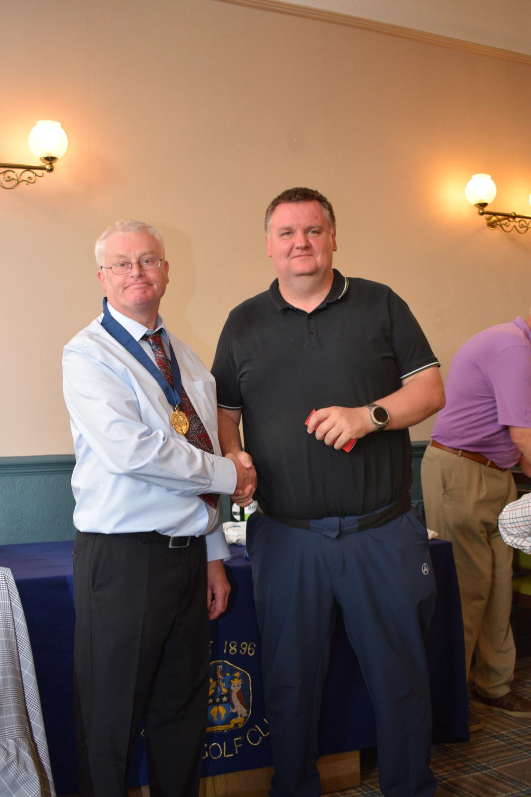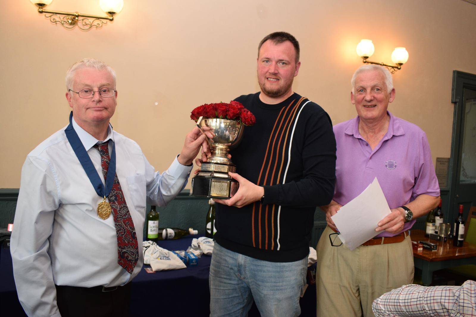 This year the event was held at Cobble Hall (Leeds) G.C. The weather was cool with gale force winds. The service from the Golf Pro Office, Bar and Caterers was very good throughout the day. It was the 84th Braime Trophy event and it was won by Dan Brown who has a handicap of 3. The scores were low due to the winds, with Dan Brown retaining the Braime Trophy with 37 points…..