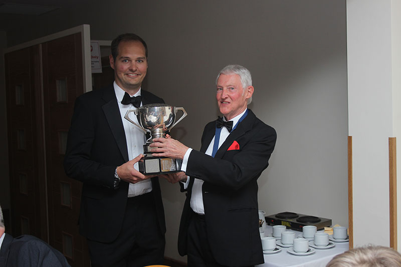 Our president Barrie Yates presided and after delivering a short but entertaining speech he presented Alan Braime with the Braime Rose Bowl Trophy. Alan won the trophy at the 2016 Golf Tournament for the best score in an individual Stableford at Scarcroft Golf Course. Alan’s great-grandfather had presented the trophy to the association.