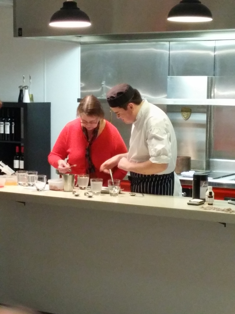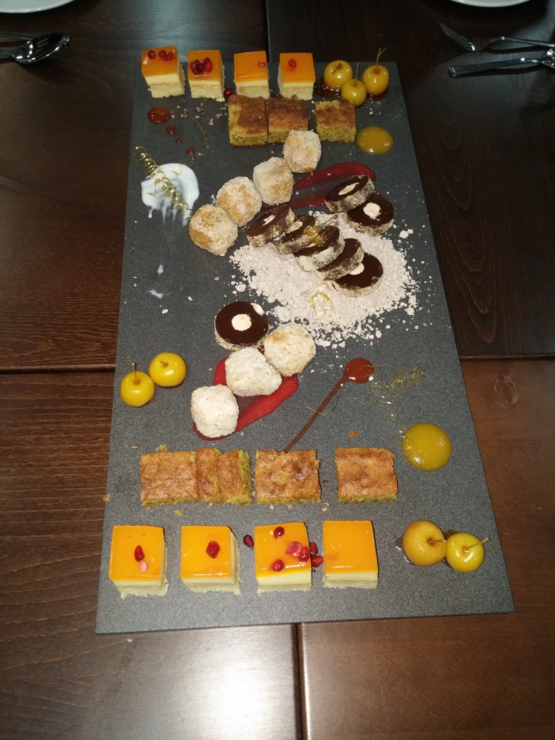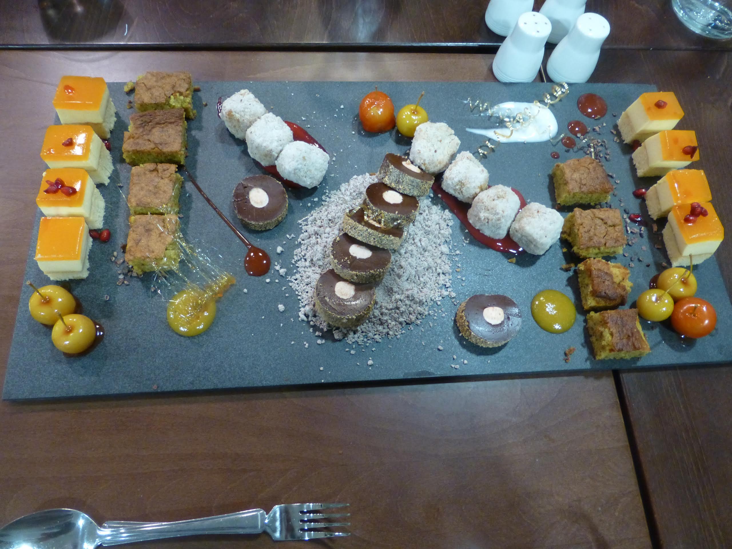 At the end of the cooking demonstrations we were invited to sit at very well presented tables. We then enjoyed a platter of savoury dishes, very similar to a tapas meal. They were delicious but what followed with the sweet platter was just fabulous. If you don’t believe me take a look at the picture. I’m not even a pudding man but the flavours were wonderful. Malcolm, you did the organisation proud this evening. It may have been a little more expensive than some other evenings but I believe all will agree it was well worth it.