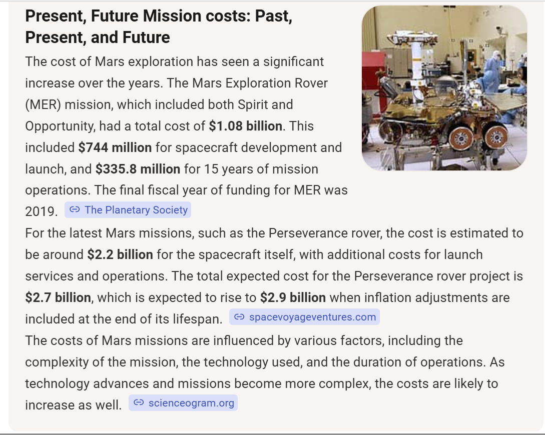 For those who are wondering how much would be needed to design a rover, here is an AI answer to that question :-