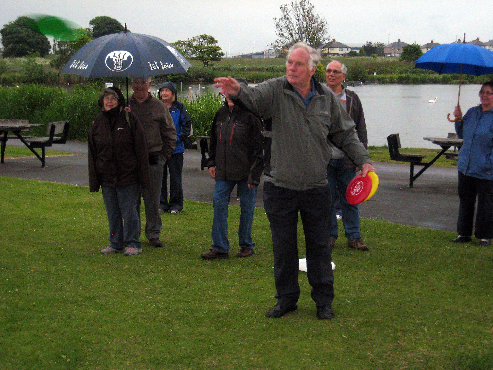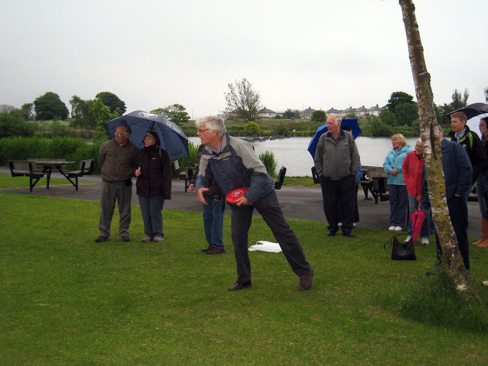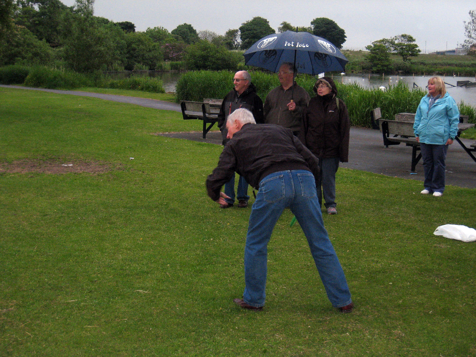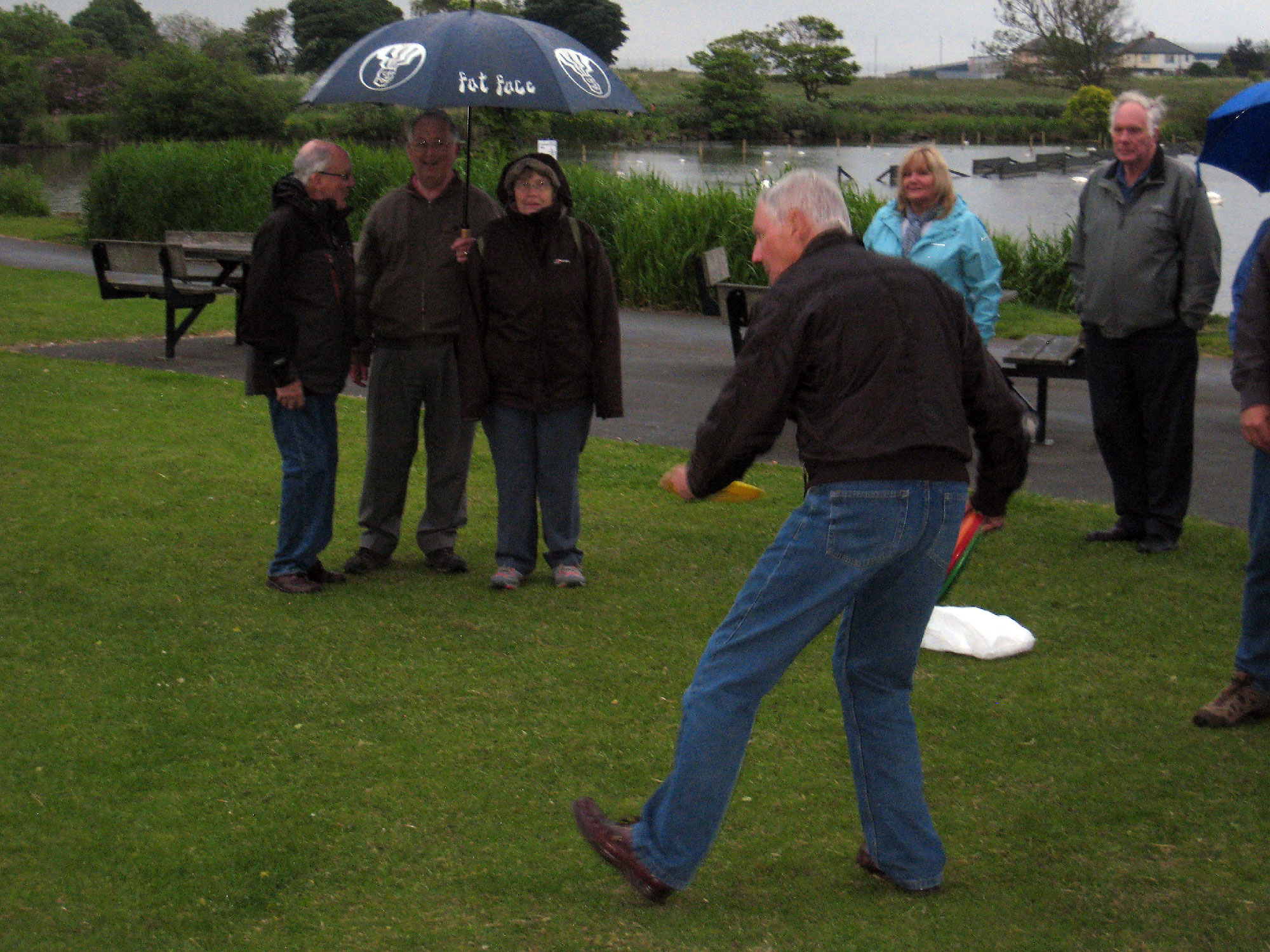 After the walk during which a few photographs were taken we gathered on an open grassy space for this year’s exciting competition – Frisbee Throwing ! Skill levels ranged from ‘Precision’ to ‘Pathetic’ as we each threw the frisbees aiming for a roped circle target only a few feet away. Most of us realised that we needed a lot of practice to get anywhere near the outstanding winner, Howard Kingswell, who breezed into first place with some excellent throwing.