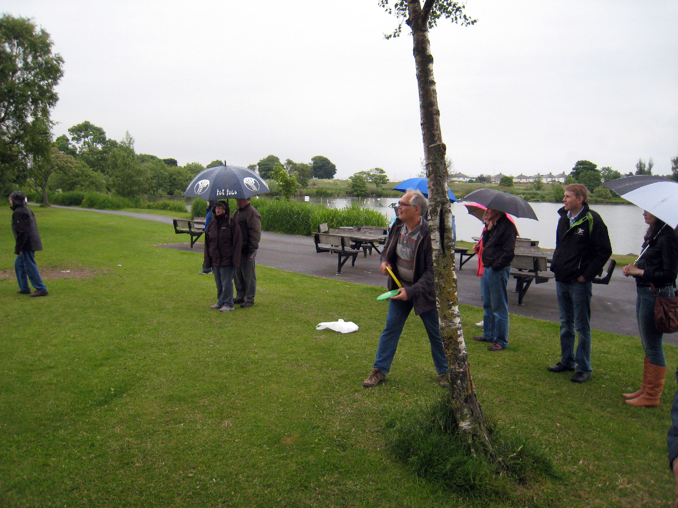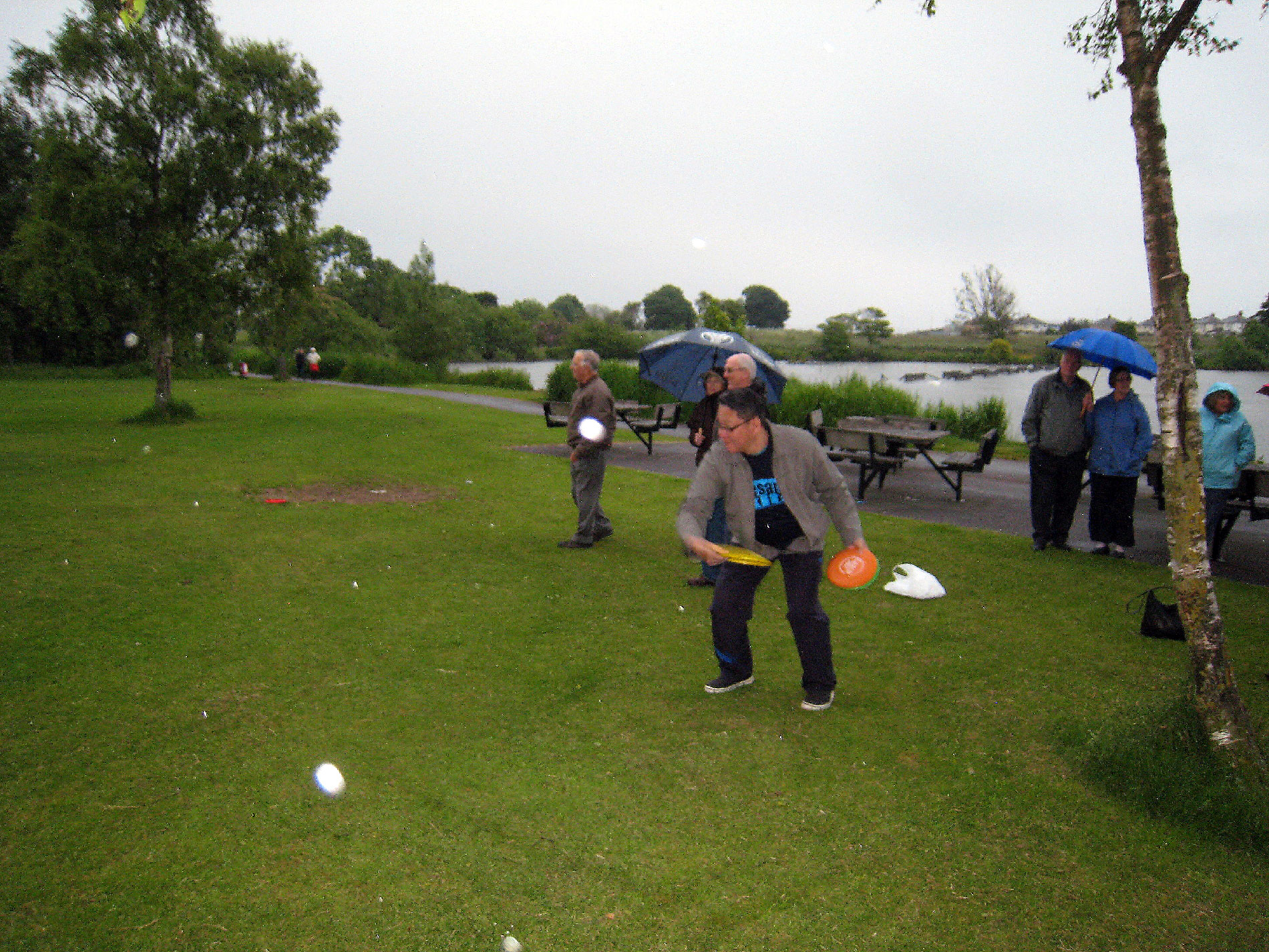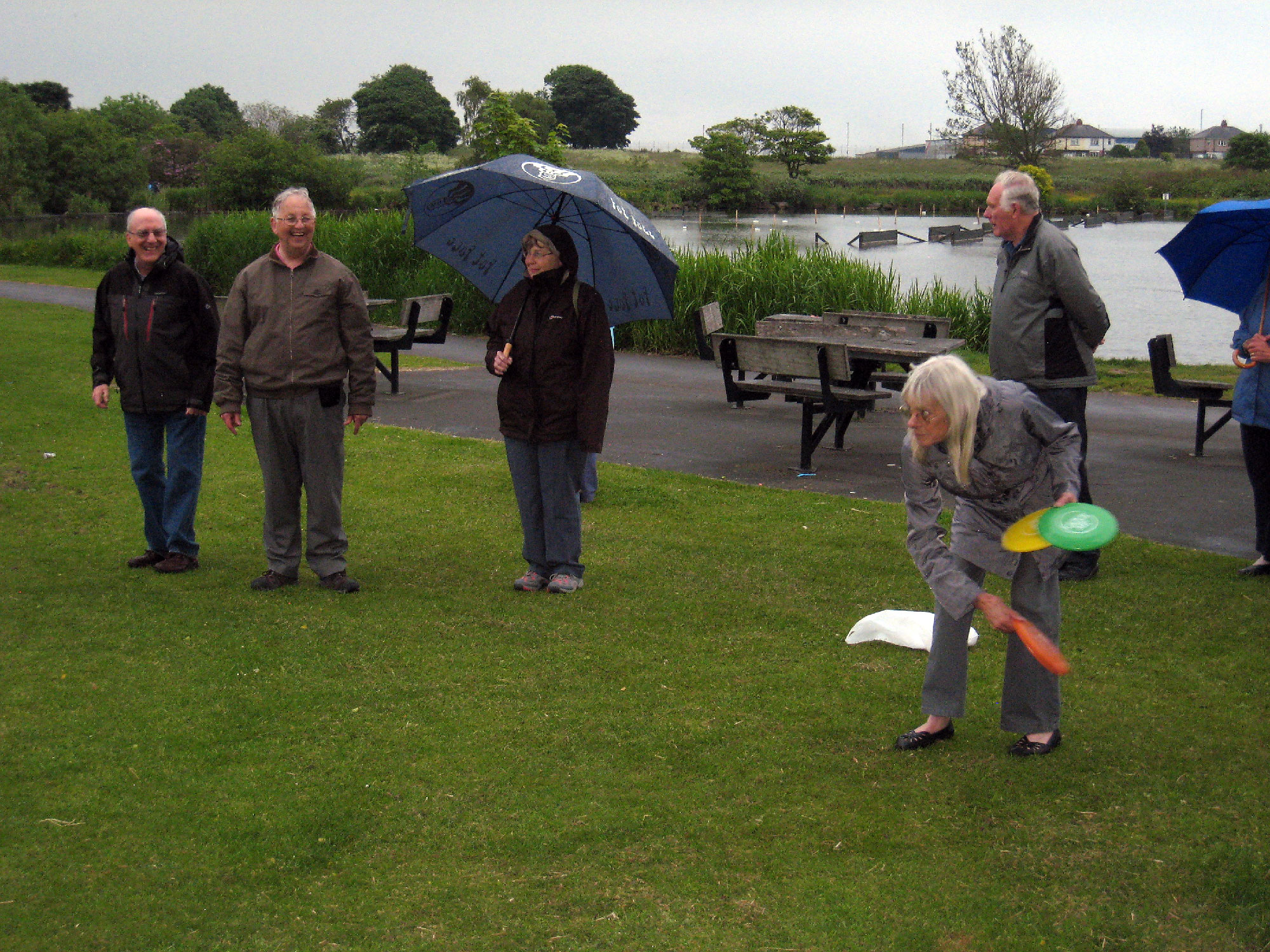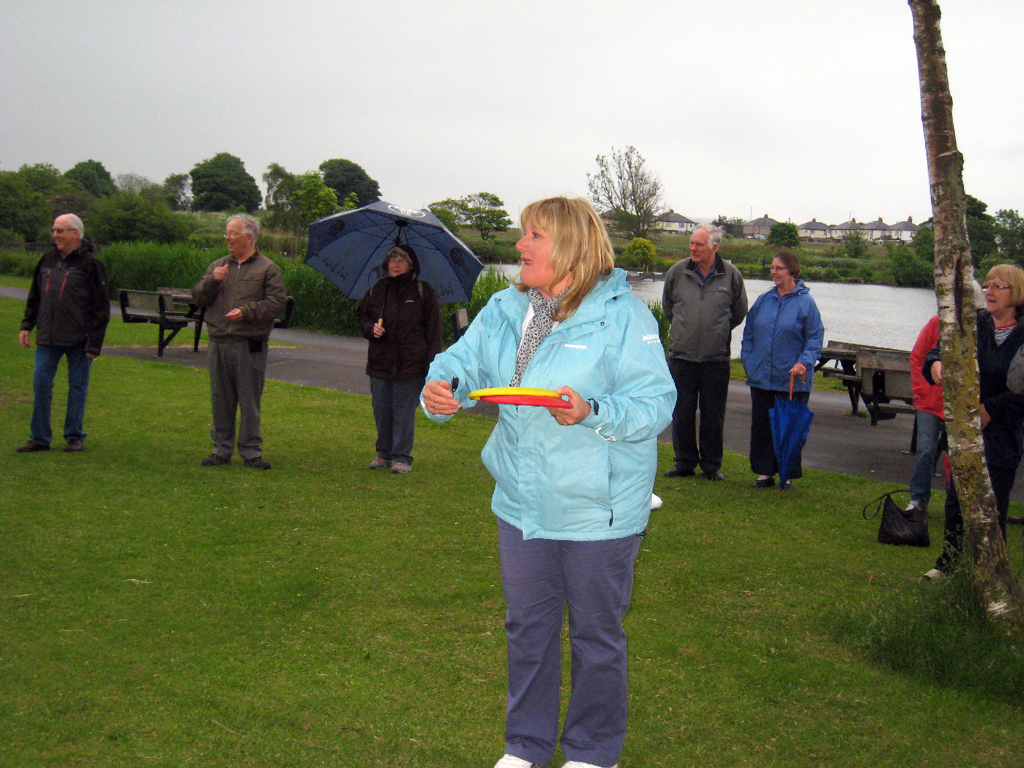 After the walk during which a few photographs were taken we gathered on an open grassy space for this year’s exciting competition – Frisbee Throwing ! Skill levels ranged from ‘Precision’ to ‘Pathetic’ as we each threw the frisbees aiming for a roped circle target only a few feet away. Most of us realised that we needed a lot of practice to get anywhere near the outstanding winner, Howard Kingswell, who breezed into first place with some excellent throwing.
