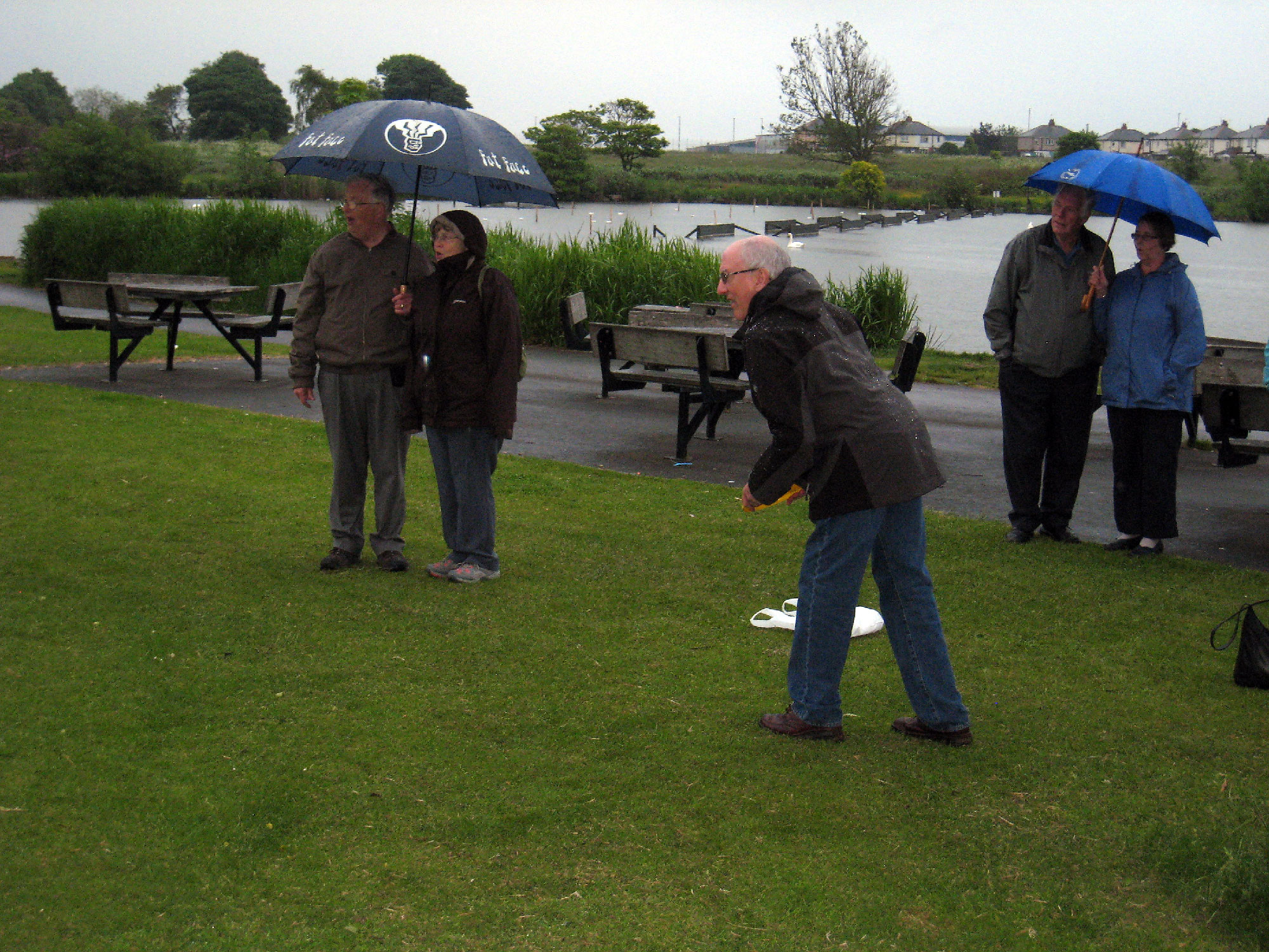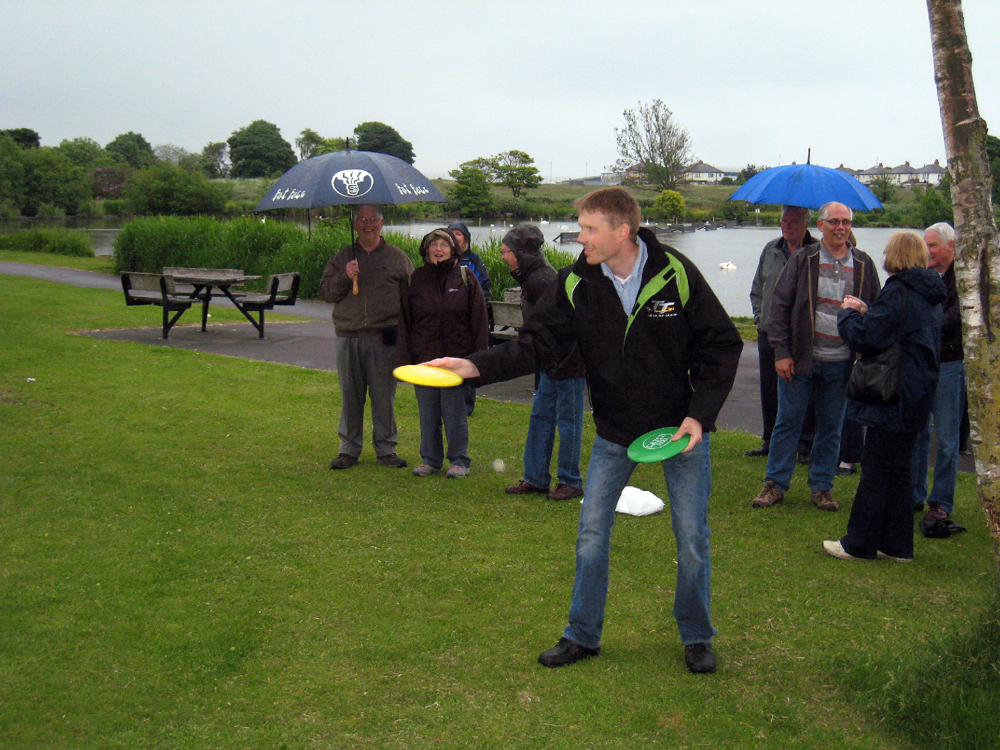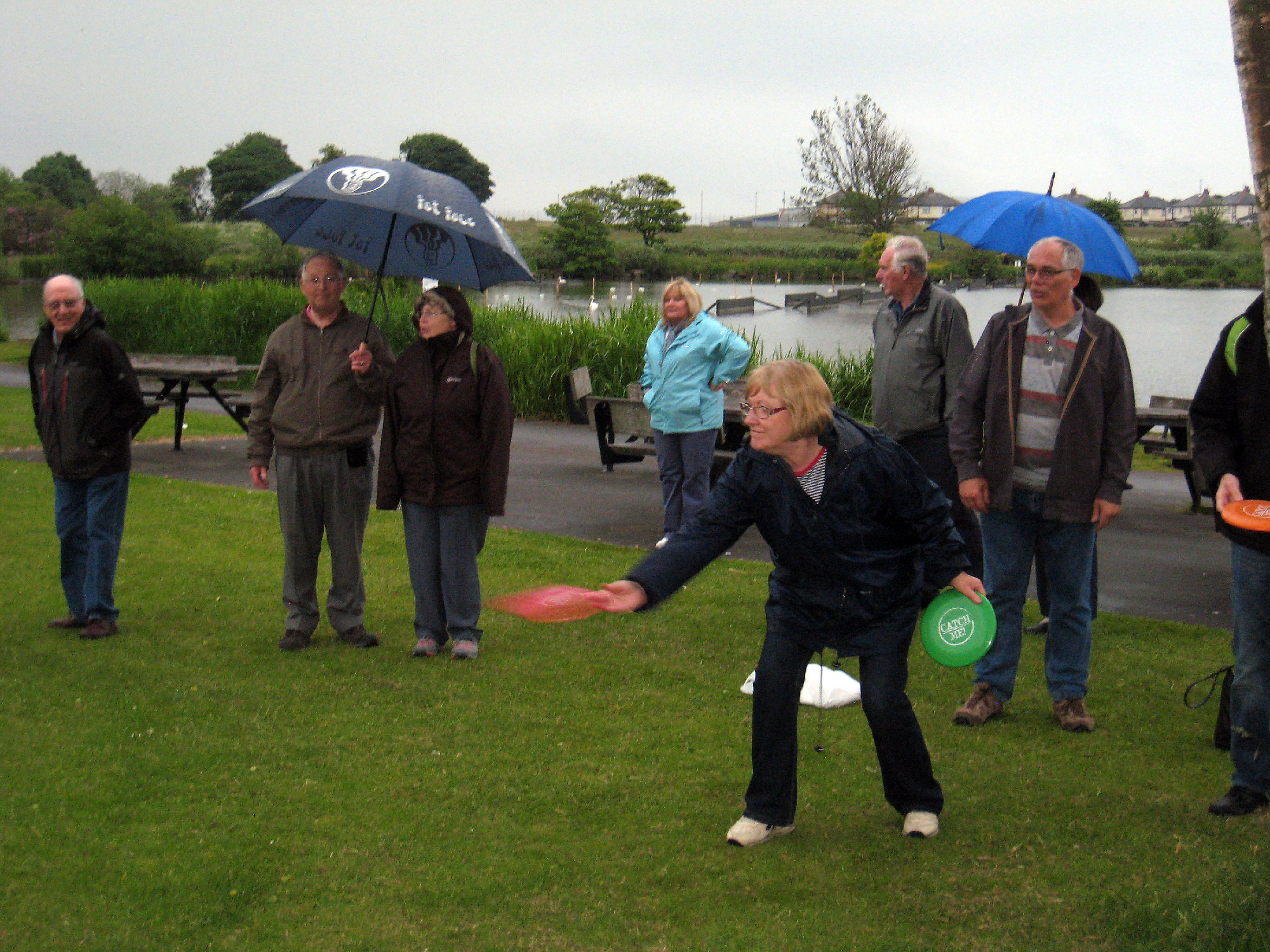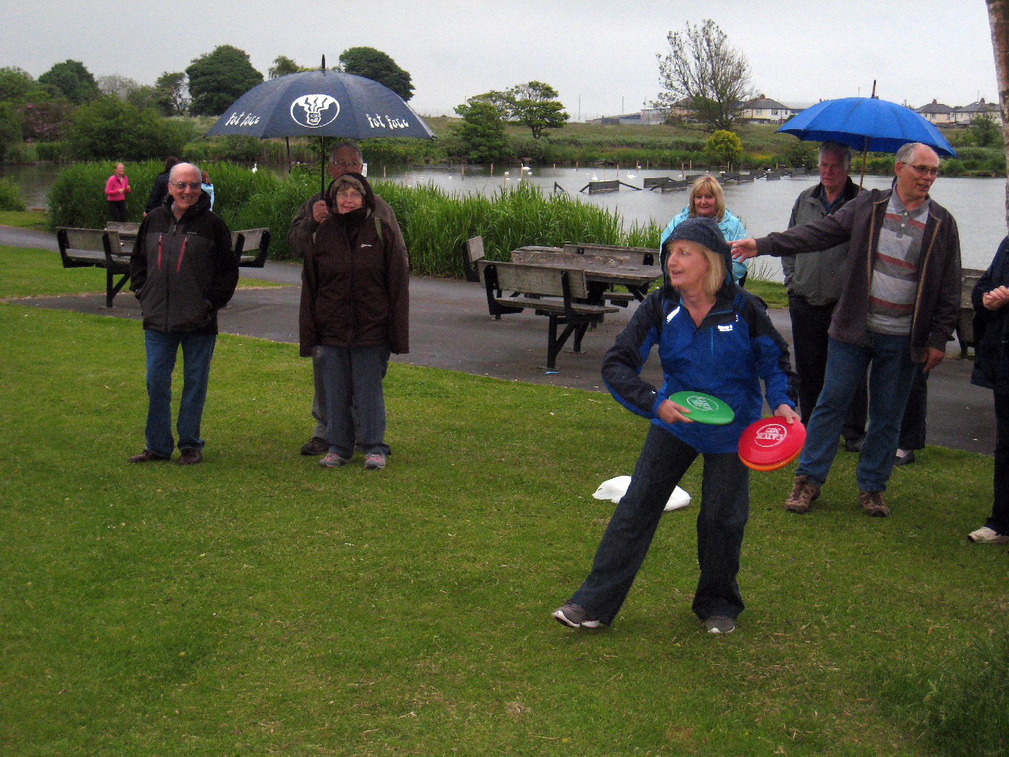After the walk during which a few photographs were taken we gathered on an open grassy space for this year’s exciting competition – Frisbee Throwing ! Skill levels ranged from ‘Precision’ to ‘Pathetic’ as we each threw the frisbees aiming for a roped circle target only a few feet away. Most of us realised that we needed a lot of practice to get anywhere near the outstanding winner, Howard Kingswell, who breezed into first place with some excellent throwing.